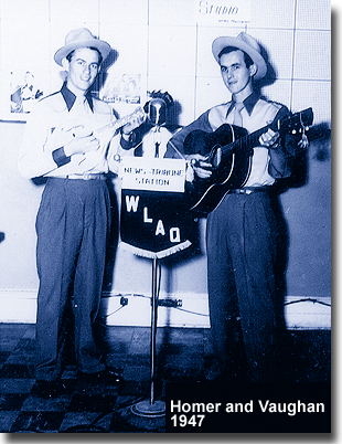 | The band then moved to the big city of Atlanta and appeared daily on WGST. During this period, the Morris Brothers program was broadcast live each morning at 6:00 AM and Bill and Earl Bolick, the Blue Sky Boys, were broadcast at 7:00 AM. Later, the Morris Brothers moved to Rome, Georgia, to WLAQ, where they remained until 1949. After leaving Rome, Georgia, the brothers left radio and performed only on stage. For several years during this time Homer and Vaughan made up the duet portion of the Morris Brothers show. |